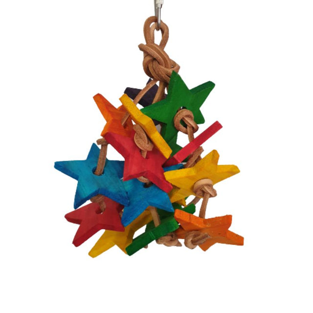 The Leather Star Nibble is made up of colourful wooden star shapes hanging on a leather rope. A simple yet fun chew-and-play toy for small birds that will keep them happy and entertained.