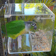 Made from food-grade acrylic, screw in the hooks and mount on the outside or inside of any size cage. It can be used for seeds, pellets, vegetables, sprouts and even Loirkeet dry food.