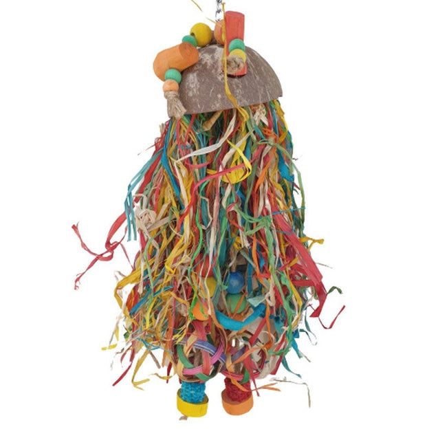 The Jellyfish Shredder is perfect for shredding! It is made with pandan tentacles hanging from a half coconut, topped with Java wood slices and a hanging vine centre. A great addition to add into your bird's toy rotation, especially for those birds who love to shred and play.