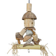 A rustic natural chew and play toy featuring a half coconut top, bamboo tubes, mahogany shell, shredded paper, and pumice stones to help keep beaks in check. Perfect for birds who enjoy a mix of textures and materials!