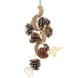 This hanging bird toy features a natural vine centre with dangling pinecones, corn cobs, mahogany, and balsa slices. It’s designed for chewing and pulling, offering a mix of natural textures to explore while adding interest and variety to the cage.