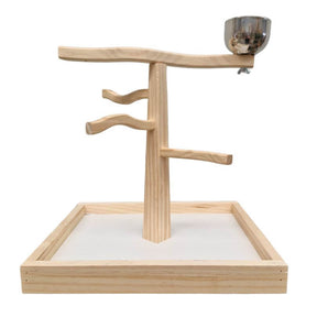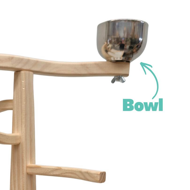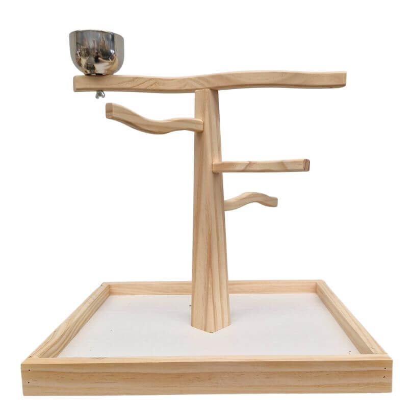 This natural parrot play gym includes a food bowl and provides a fun space for climbing, perching, and play. Easy assembly required. Pictures are for reference only, as each stand is naturally individual.