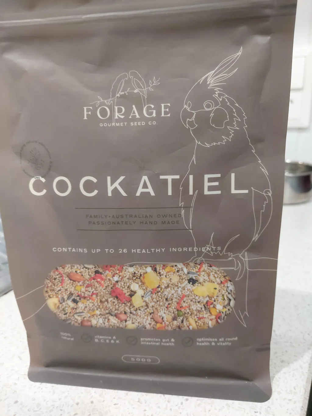 Forage Cockatiel is hand-blended with 26 different human-grade seeds, herbs, vegetables, fruits, nuts and grit, offering your bird healthy nutrition they will love while encouraging natural foraging behaviours.