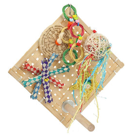 The Fiesta Play Wall and Perch is a fun chew, shred and play toy. Position it on the side of your bird's cage and watch them play with Finger Traps, Wicker Shapes and fun coloured paper.