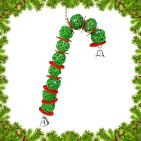 Deck your feathered pal's home with a fun chewable decoration and get them prepped for the holidays! Crafted with wicker balls and plastic discs all in traditional holiday shades. Includes two bells.