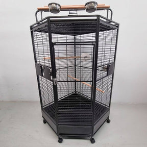 Parrot corner cage with play area on top. It's a great space-saving cage considering its large size. Due to its large size, this cage is only available from our Archerfield store; we recommend a ute or trailer when picking it up.