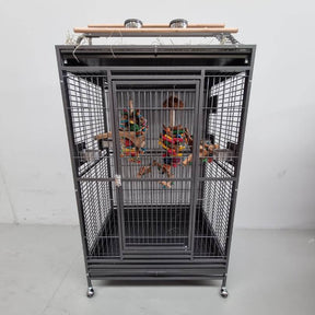 Extra large Parrot Cage with play area on top. Suitable for Cockatoos, Alexandrines, Amazons and Macaws. Large long door and four lockin bowls. Due to its large size, this cage is only available from our Archerfield store; we recommend a ute or trailer when picking it up. Bedding and Toys not included.