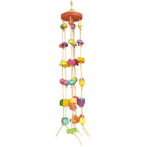 Leather Tentacles have wood beads and blocks hanging on long leather ropes. This is a long toy that needs good space to hang. A good addition for your birds toy rotation to keep things interesting and new.