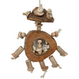 The Ships Ahoy toy is made with a thick chewable coconut slab and wood blocks and beads hanging from it on sisal rope.