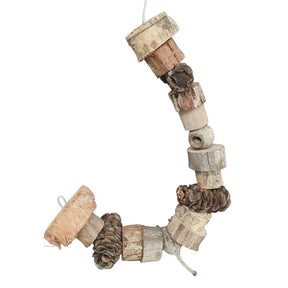 Your bird can swing, chew and play naturally. Hand-crafted with Australian Native Wood slices, Gumnuts and Banksias. It has a sturdy but flexible wire centre so you can bend to whatever shape you like.