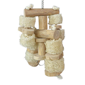 The Java Loofa Play and Nibble Toy is a fantastic way to keep your bird entertained! Made from natural Java wood and loofah pieces, this toy is perfect for chewing, shredding, and climbing.