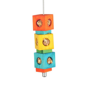 The stick can hold veggies inside the cubes in case they are easy to fall when birdies chewing. Satisfied with it!