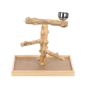 This natural parrot play gym is made from java wood and includes a built in food bowl. It provides a fun space for climbing, perching, and play, with more photos coming once stock arrives.