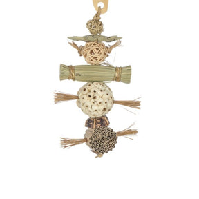 This mini chew toy is made with a cardboard roll, sola ball, reed bundle, wicker ball, and palm star. Packed with different textures, it’s perfect for small birds that love to nibble, chew, and explore while staying busy in the cage.