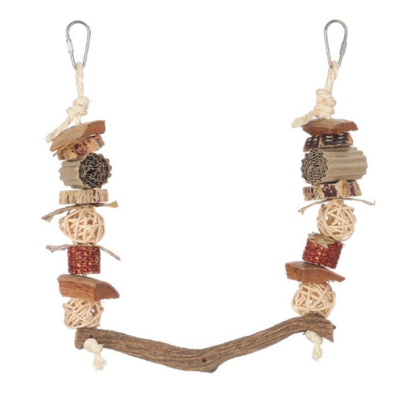 This natural bird swing is made with wood slices, woven vine balls, corrugated cardboard, and a sturdy natural branch perch. It’s designed for swinging, perching, and chewing, adding movement, texture, and fun to your bird’s cage while helping keep boredom away.