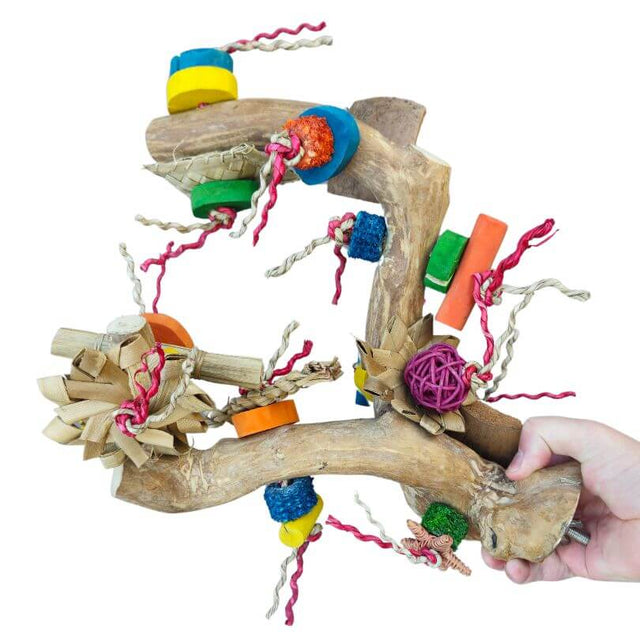 Natural Java Perch with a colourful seasonal mix of Java woodblocks, Mahogany seed pods, corn cobs, pumice, coconut shell and oyster shells.