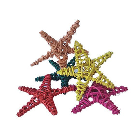 This five pack of Colourful Wicker Stars makes perfect chewable foot toys. You can also use them for crafting your own bird toys.  Colours varied and packs chosen at random.