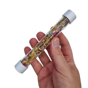 Clear acrylic tube foot toy that can be filled with your bird's favourite treats. Dry treats work best. Great for foraging trays or offered simply as a foot toy. Your bird can also roll it around to get the goodies out.