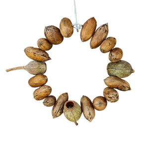 Available in Almond or Pecan. Handmade wreaths of nuts with added Gumnuts.
