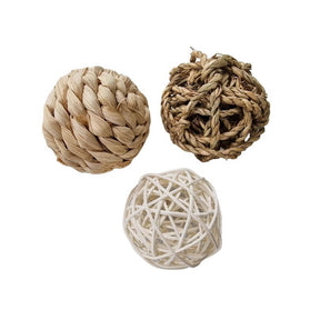 Three pack of fun chewable foot toy balls. Made from Seagrass, Wicker and Hyacinth.
