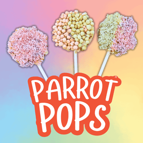Every Parrot Pop is handmade in Brisbane using human-grade Pepitas, Oats, Almonds, Sunflower, Wheat, Quinoa, and natural binder, lightly dusted in Spinach, Beetroot, Puffed Quinoa, or Coconut, all finished on a food-grade paper stick.