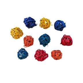 Rainbow coloured mini wicker balls. Great for adding to foraging trays or use when crafting your own bird toys. Colours are picked randomly.