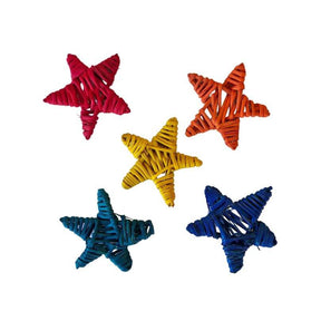 These Rainbow Vine Star Chews are made with wicker in the shape of the stars. They make perfect chewable foot toys or use them for crafting your own bird toys. Suitable for small birds. Colours are picked randomly.