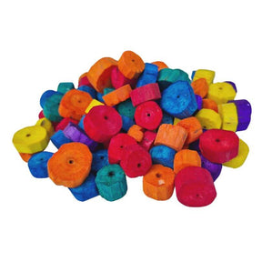 Naturally coloured dyed Slices of Sola. Great for adding to foraging trays or use when crafting your own bird toys. Suitable for all birds.
