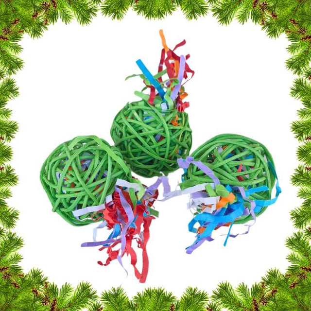 Bring some festive fun to your bird’s playtime with these Jolly Christmas Stuffer Balls! Made from natural vine and coloured in bright holiday green, each ball is filled with shredded red paper for an extra touch of Christmas cheer. Each ball is approximately 5cm round.