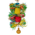 Colourful and exciting loofa, wicker, corn husk with a wooden gourd at the bottom. Great for birds that love to preen and shred.