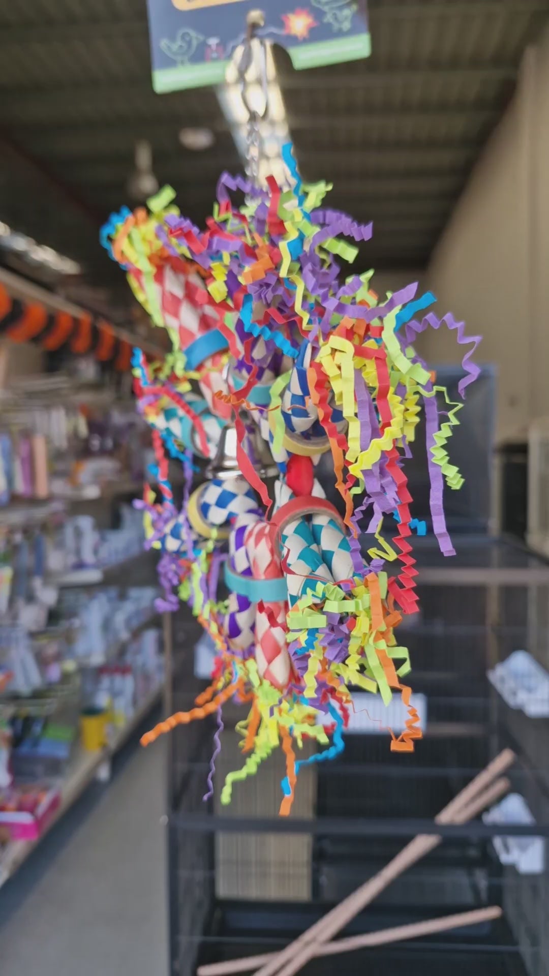 Own a small bird that loves colourful toys? The Firecracker has chewable woven tube toys with exploding shredded paper.
