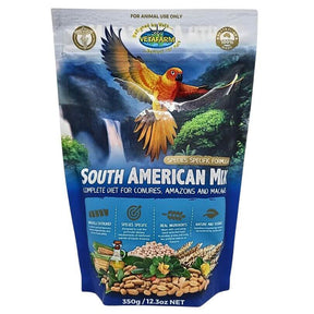 Nut-flavoured pellet suitable for Conures, Amazons and Macaws, with specific amino acids and proteins required by South American Parrots. Formulated by Avian Vets and used by us.