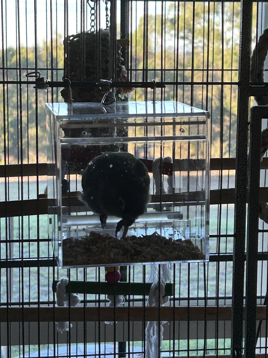 Made from food-grade acrylic, screw in the hooks and mount on the outside or inside of any size cage. It can be used for seeds, pellets, vegetables, sprouts and even Loirkeet dry food.