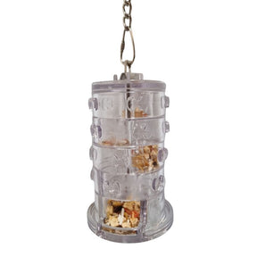 Your bird needs to twist and line up the log sections for the treat to dispense at the bottom. Made from strong polycarbonate plastic and suitable for medium- to large-sized birds with good foraging skills.